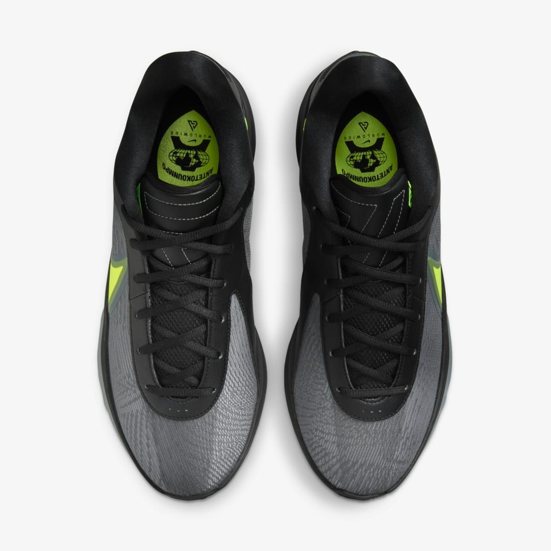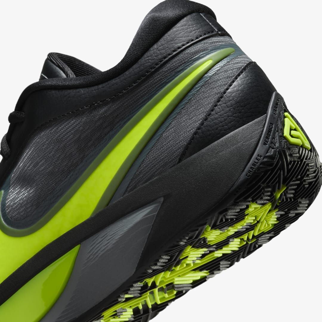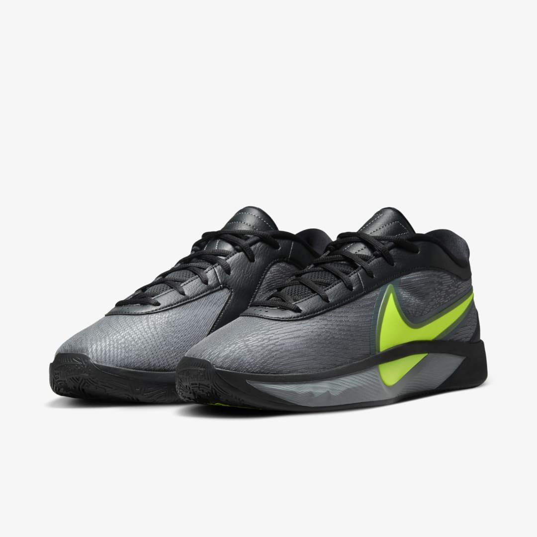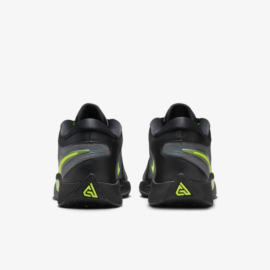 Giannis needs a shoe to dominate the modern positionless game. That's why we upgraded the traction pattern on the Giannis Freak 6. The outsole helps him stop in an instant to make all those game-changing plays. And when he's filling up the stat sheet, the Air Zoom cushioning helps keep him fresh for four quarters. With its extra-durable rubber outsole, this version gives you traction for outdoor courts. This electric look salutes the Greek Freak's always high-voltage vibes by saluting his Nigerian heritage.