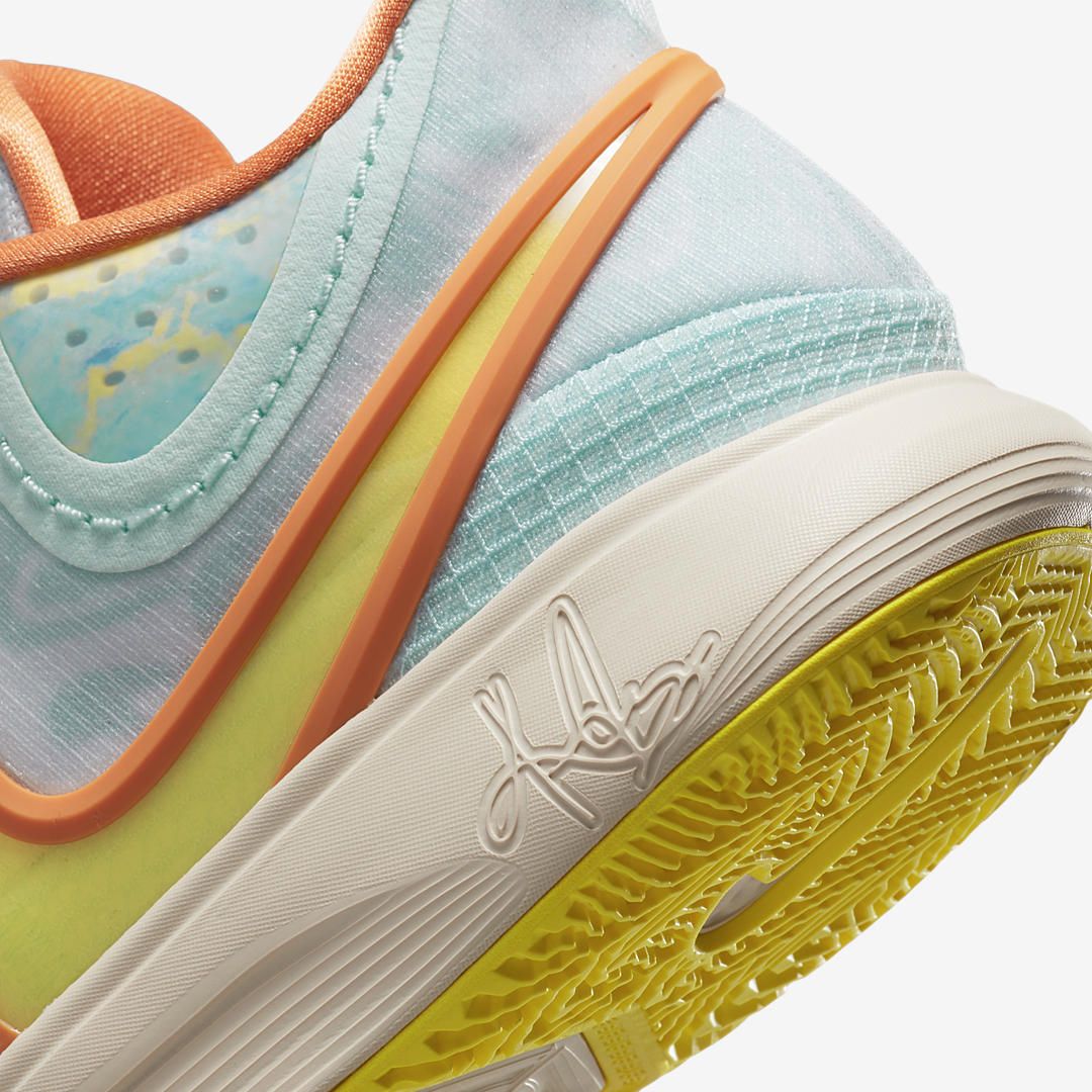 The Nike Kyrie 8 features a completely new design constructed in a mix of materials utilizing a React foam midsole equipped with Air Zoom Strobel. Other details includes Kyrie’s mother, Elizabeth Ann Irving, on the toe of the midsole along with roman numerals stitched on the medial heels. The 8 and 13 nods to Kyrie’s mom’s birthday (August 13), while the 11 and 23 represents his daughters Azurie birthday (November 23). Never released officially to public, make sure you get the last Kyrie's signature shoes with Nike before they are gone for good.